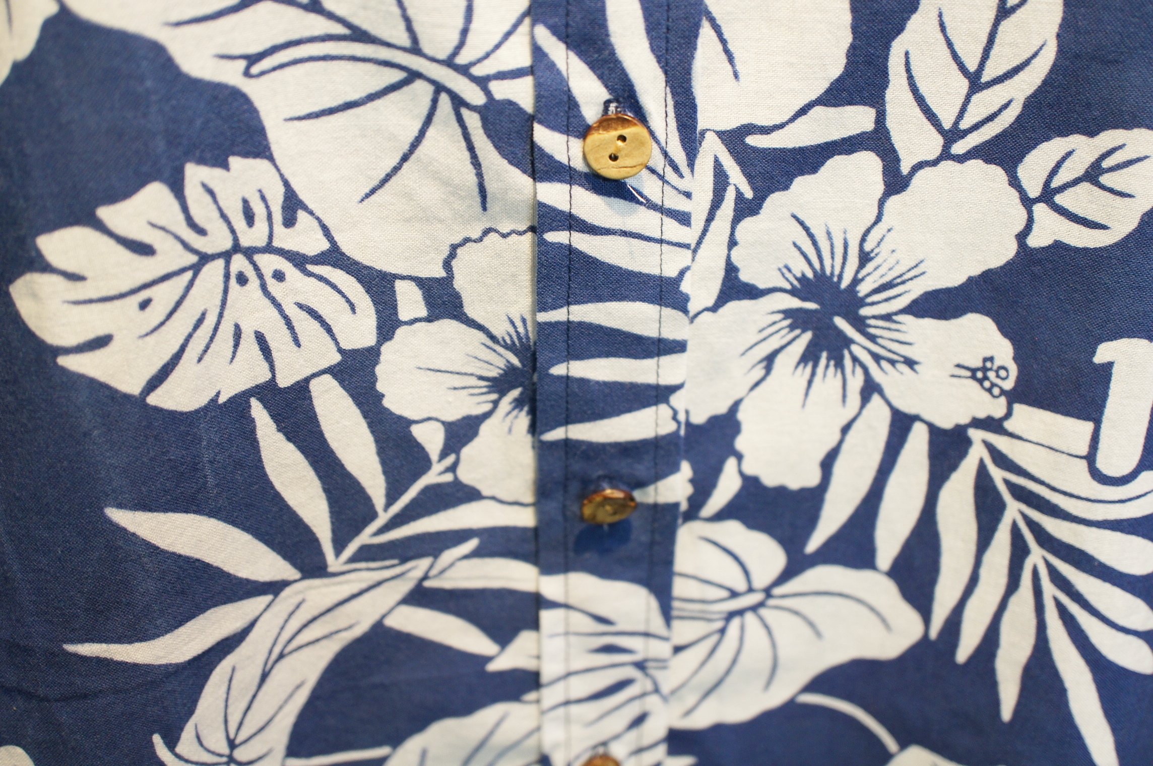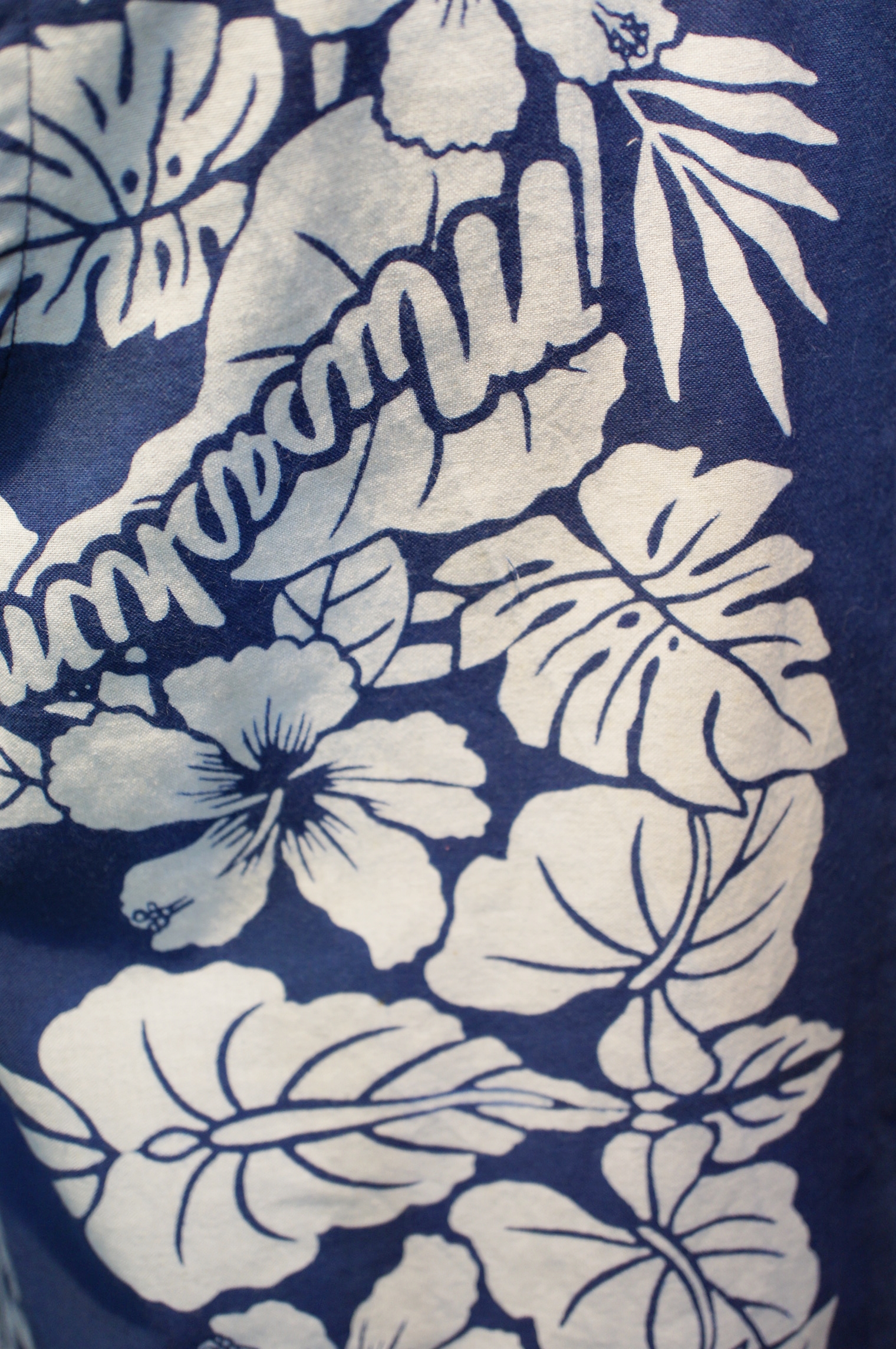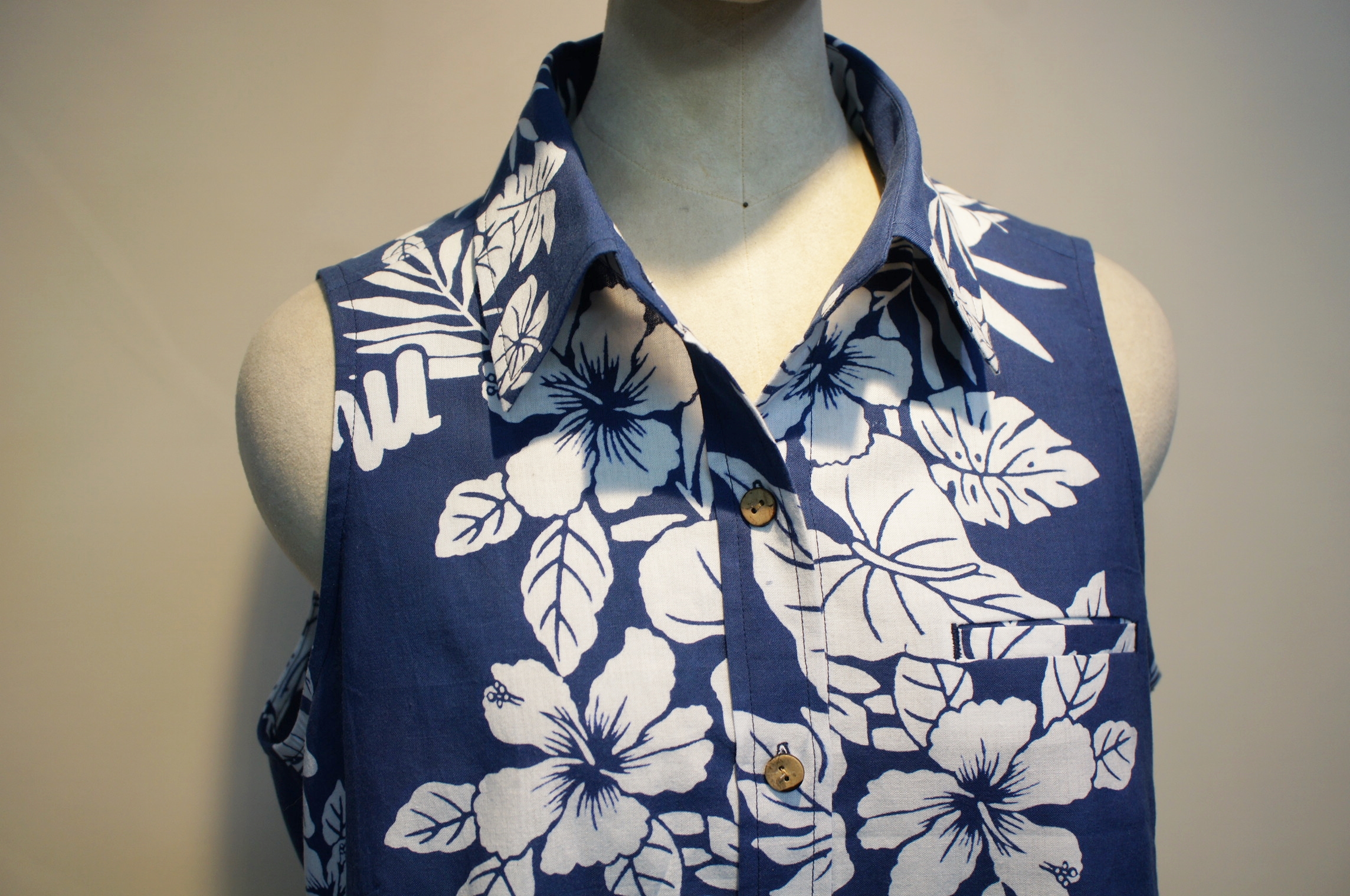 武蔵丸の浴衣地の反物から作製しました。 大相撲の浴衣地には珍しいハイビスカスの柄で、ハワイアンな雰囲気のシャツに仕上がりました。