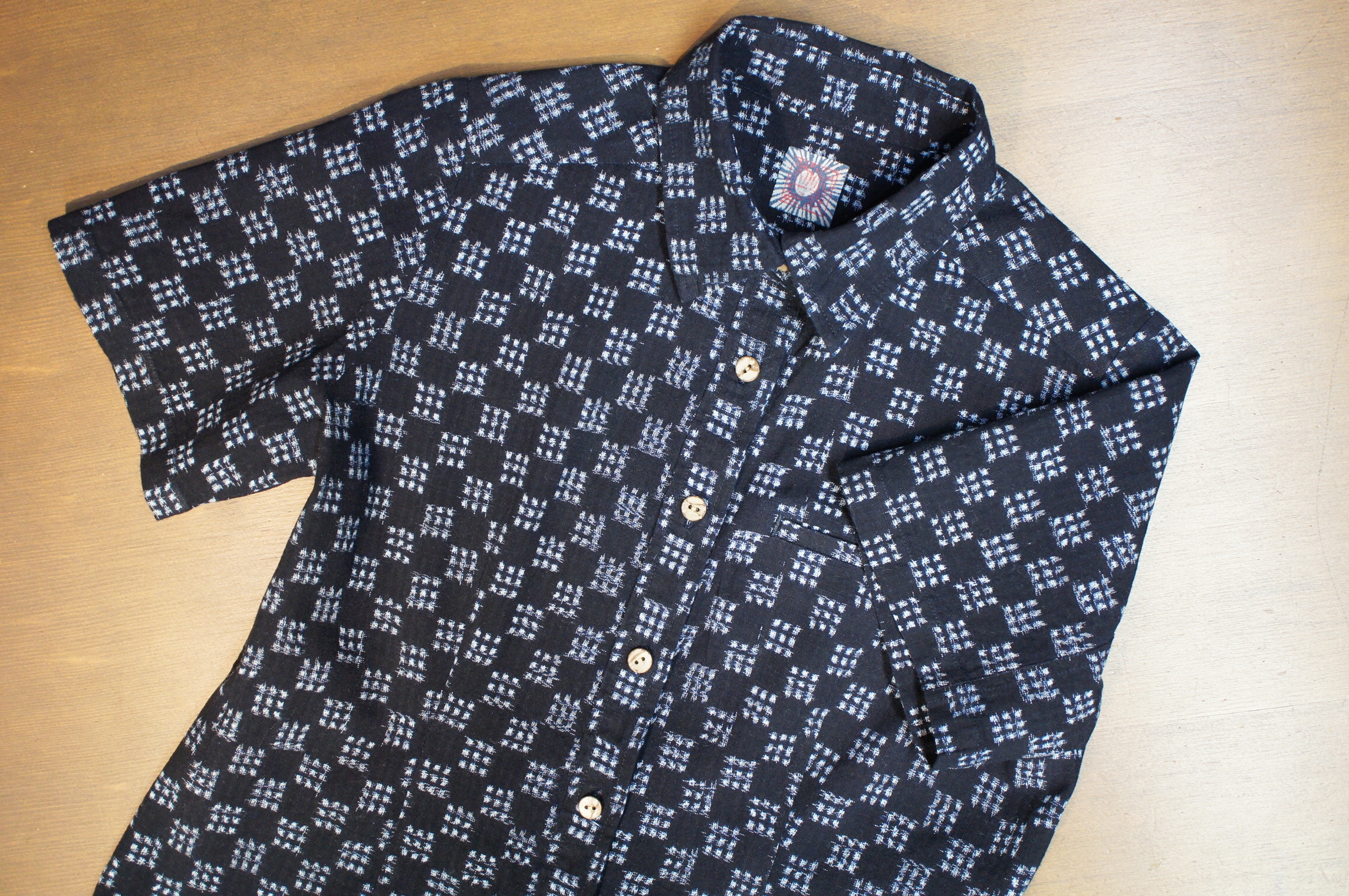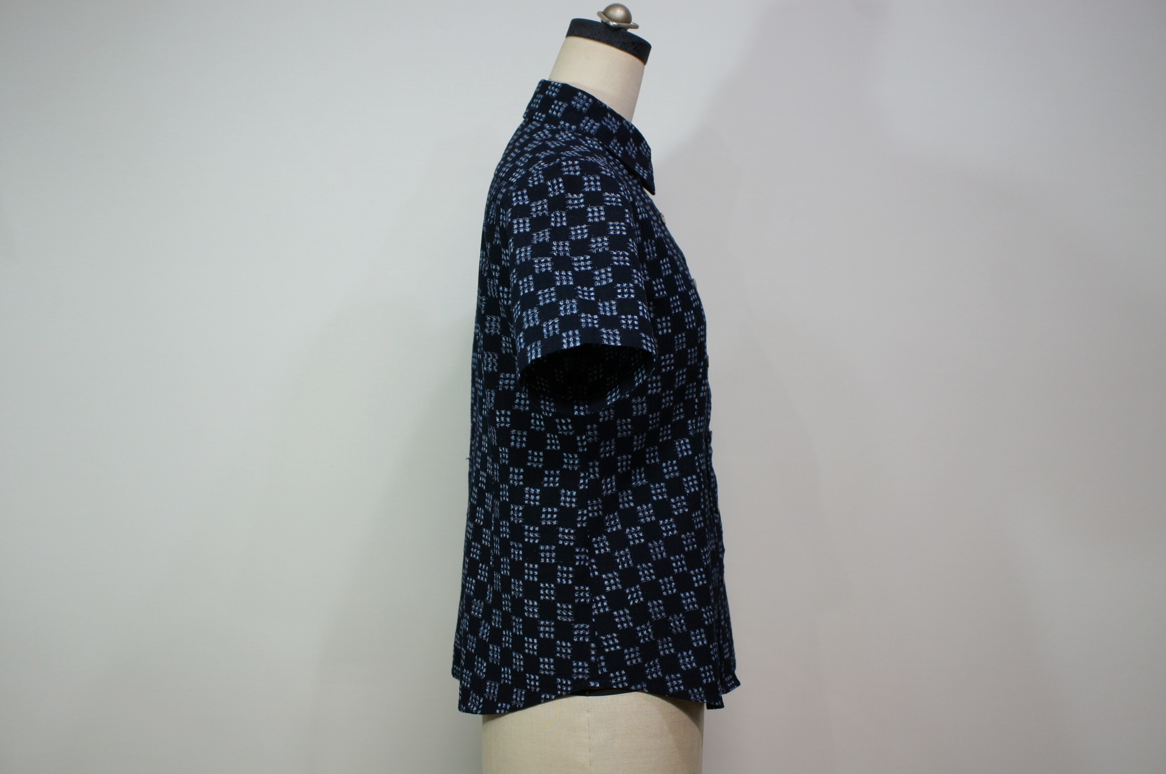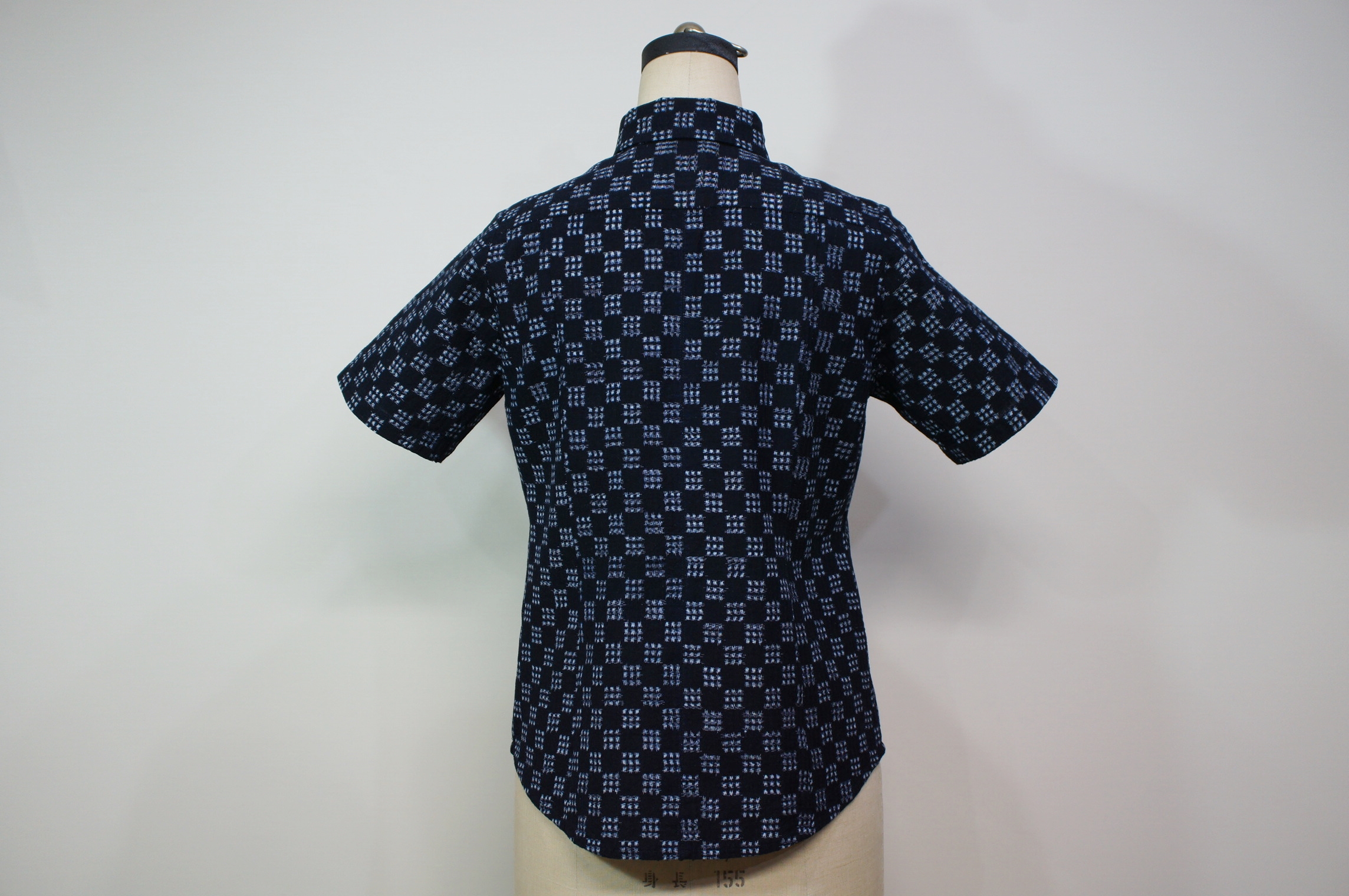 着物リメイク アロハシャツ 藍染 絣 レディース M
