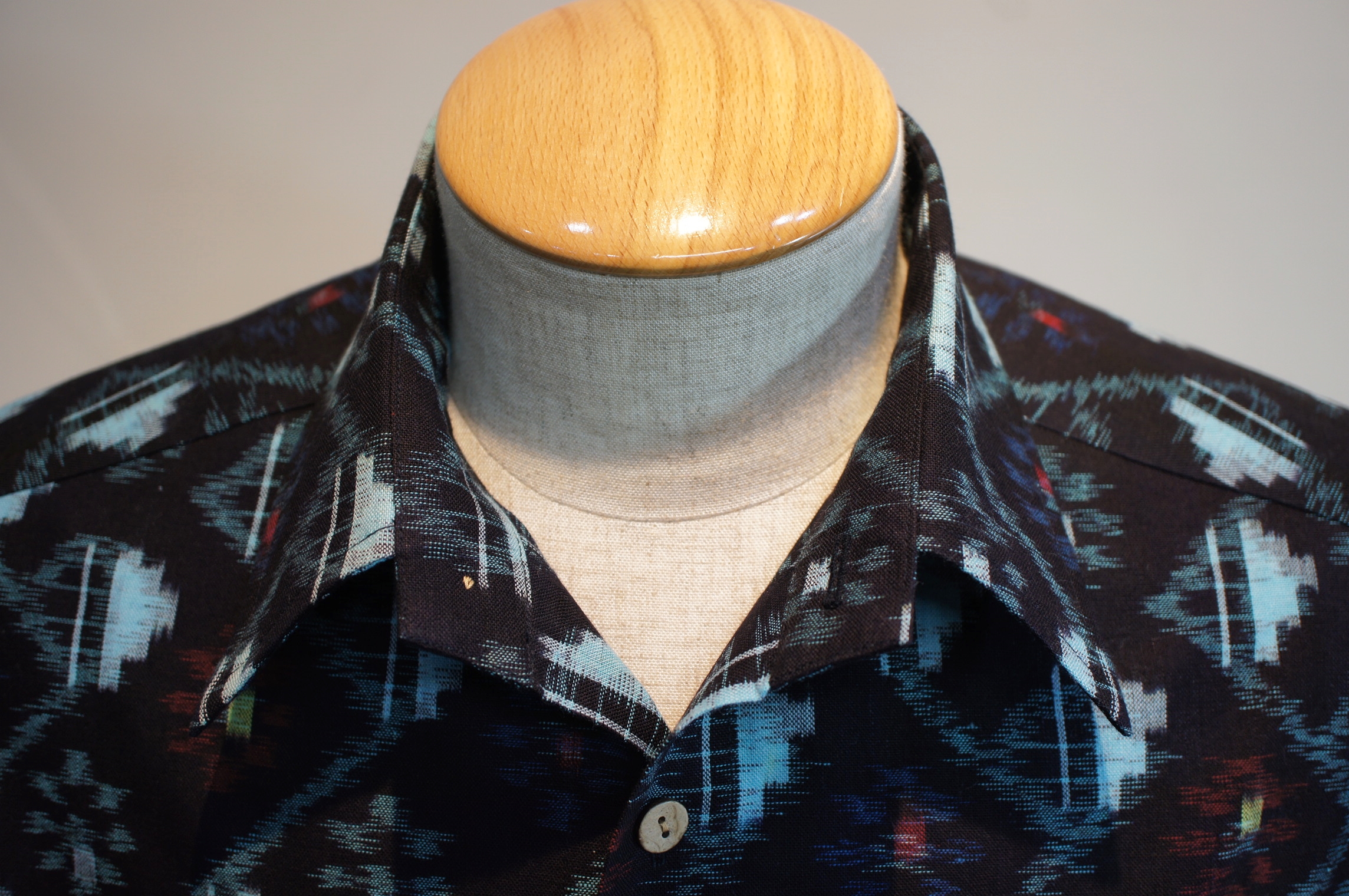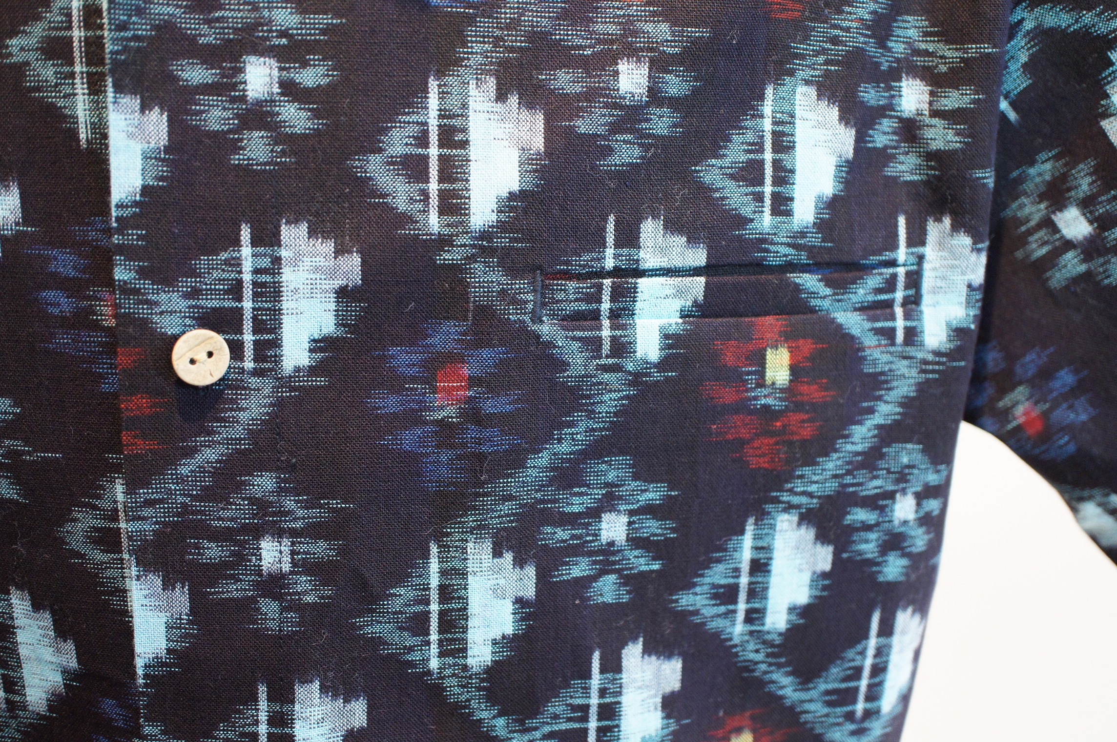 数種類の柄と模様が入り混じり、他の絣生地と比べてデザインや糸の使い方が大きく異なる斬新で素敵な作品に仕上がりました。