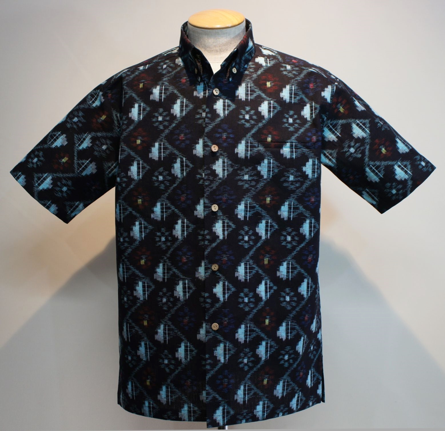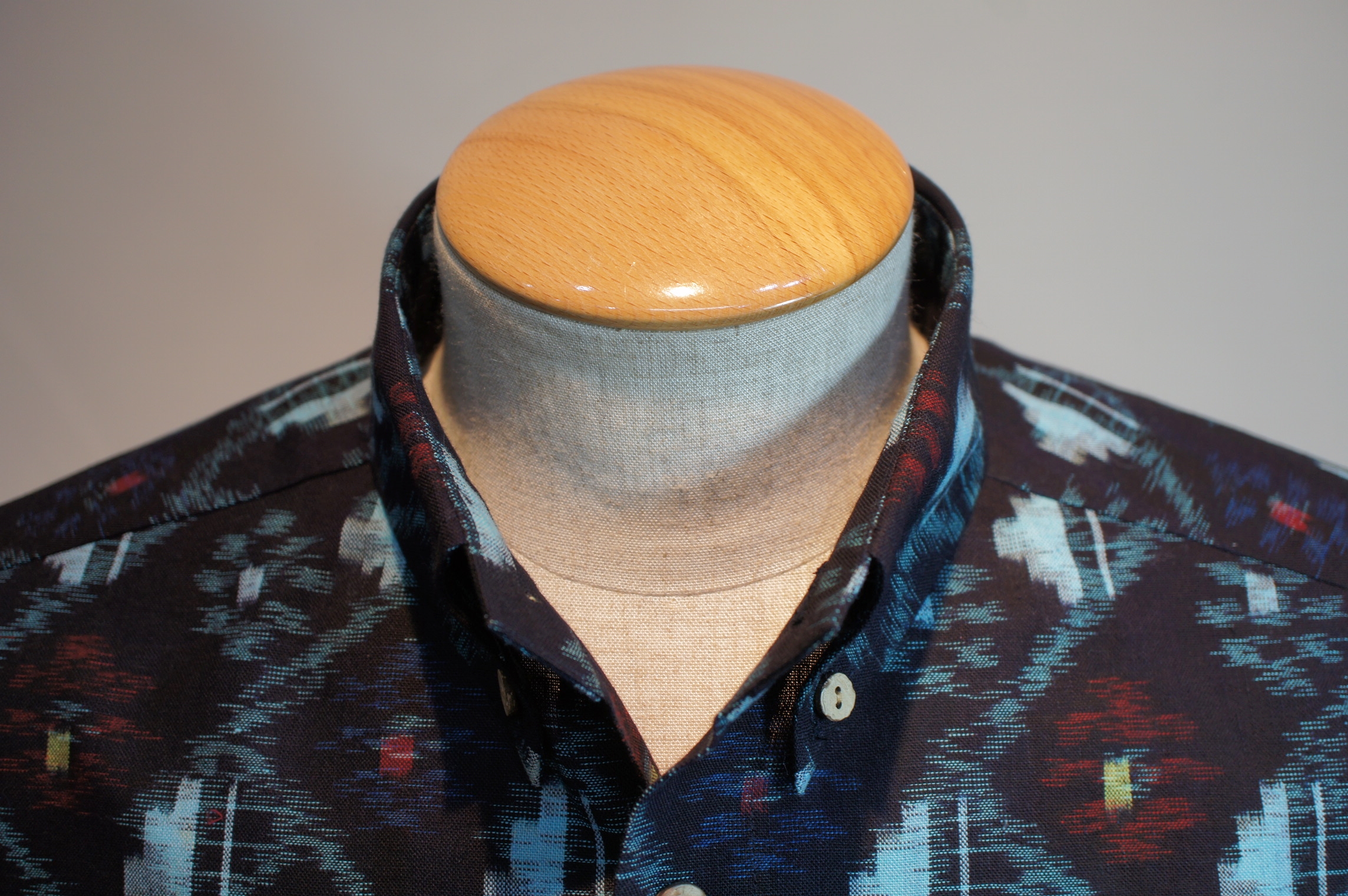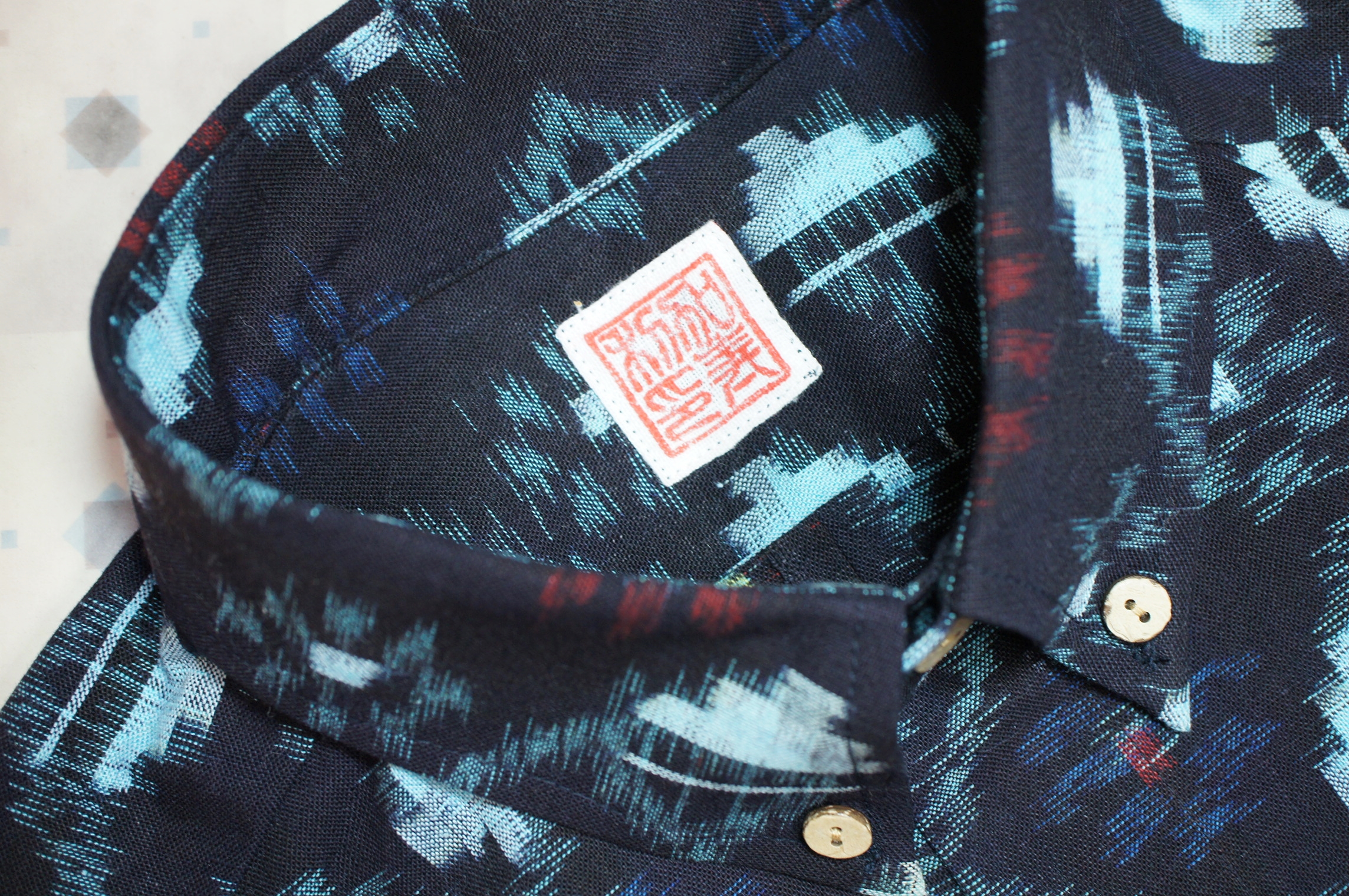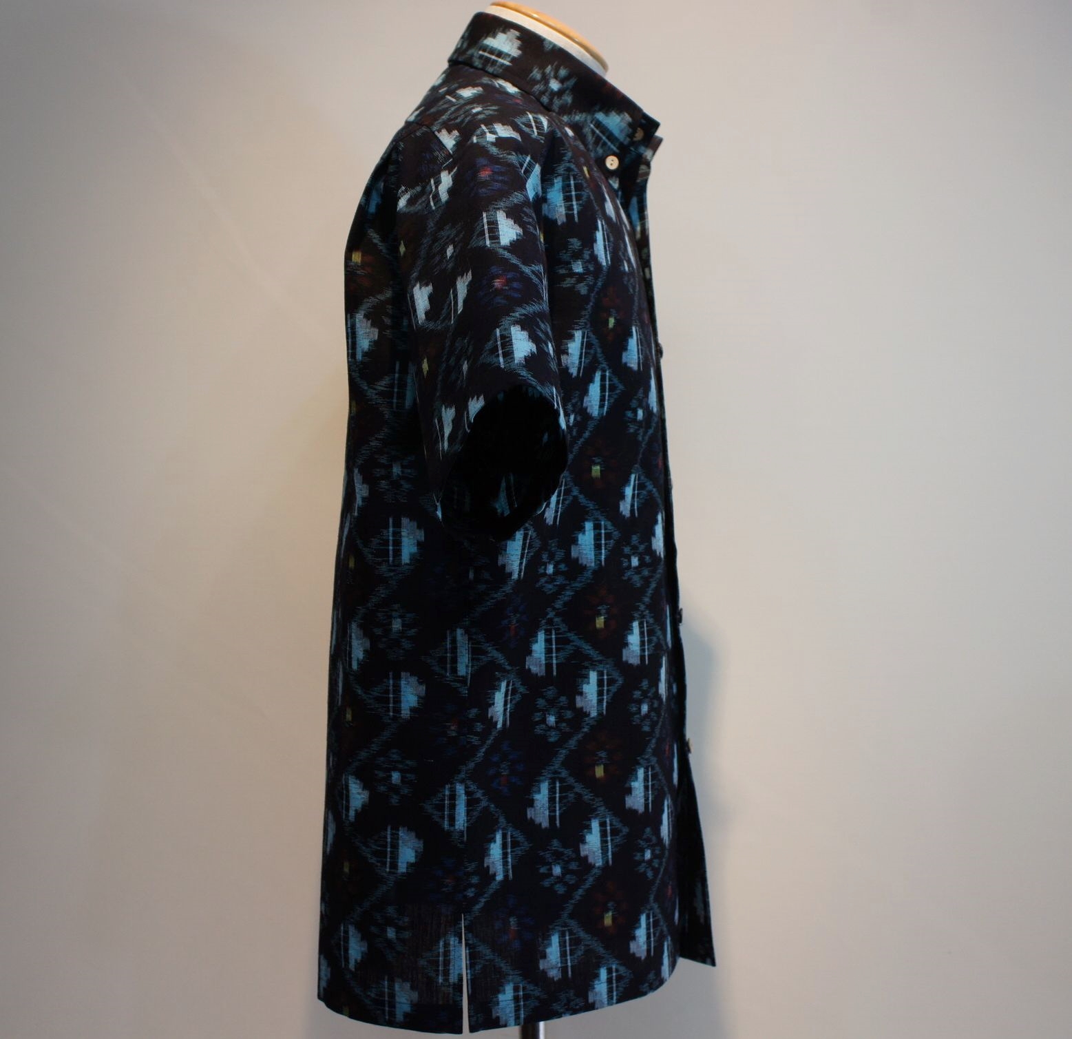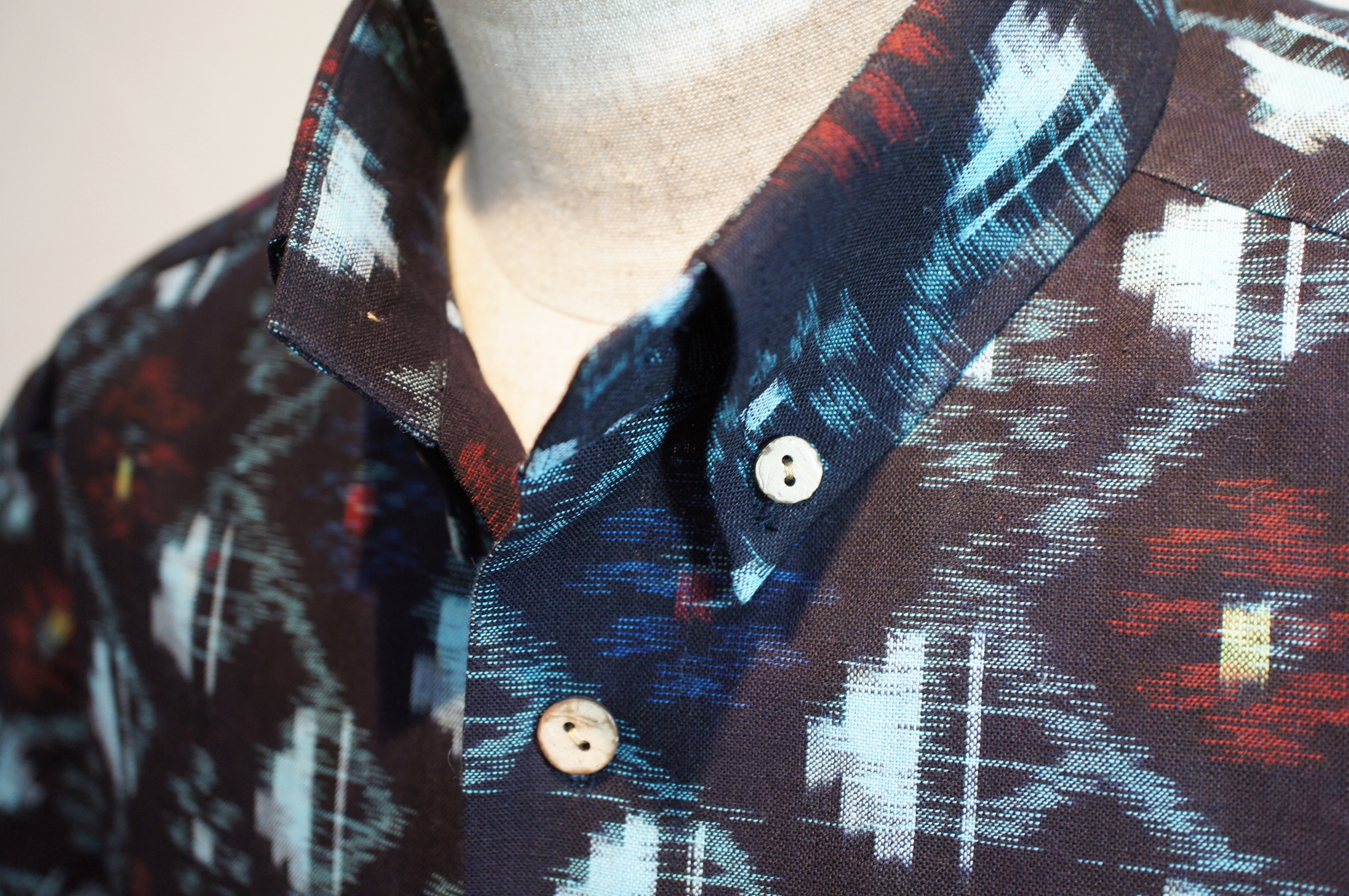 数種類の柄と模様が入り混じり、他の絣生地と比べてデザインや糸の使い方が大きく異なる斬新で素敵な作品に仕上がりました。