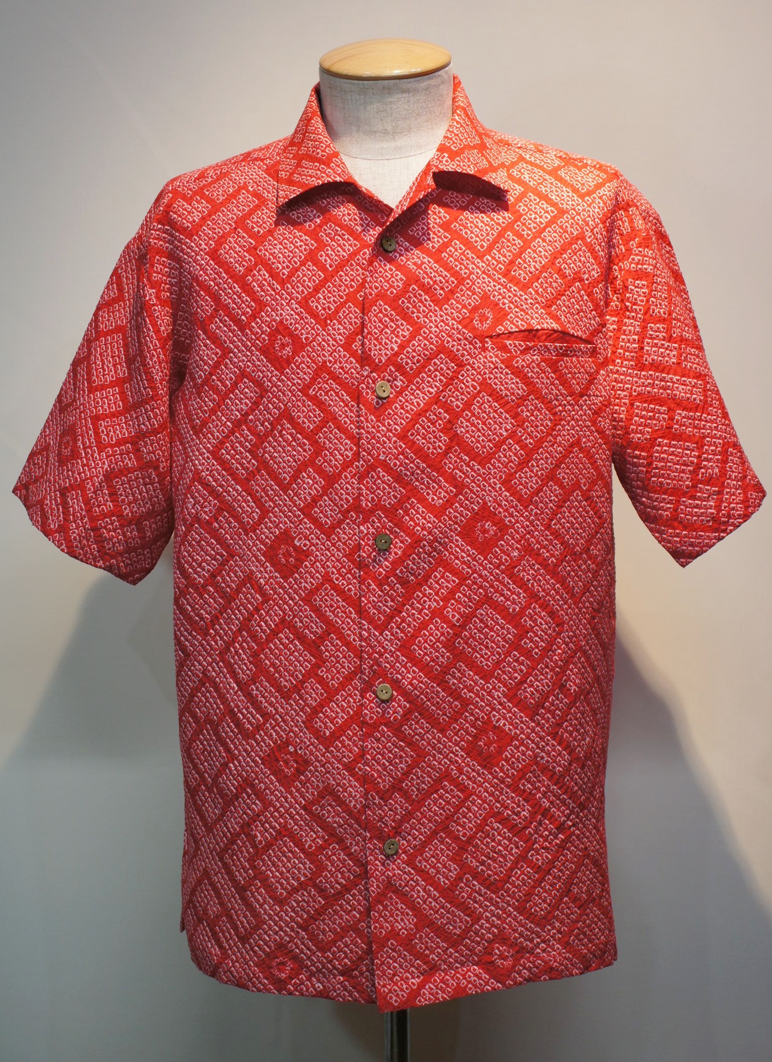 絞りが全体に施されたアロハシャツです。