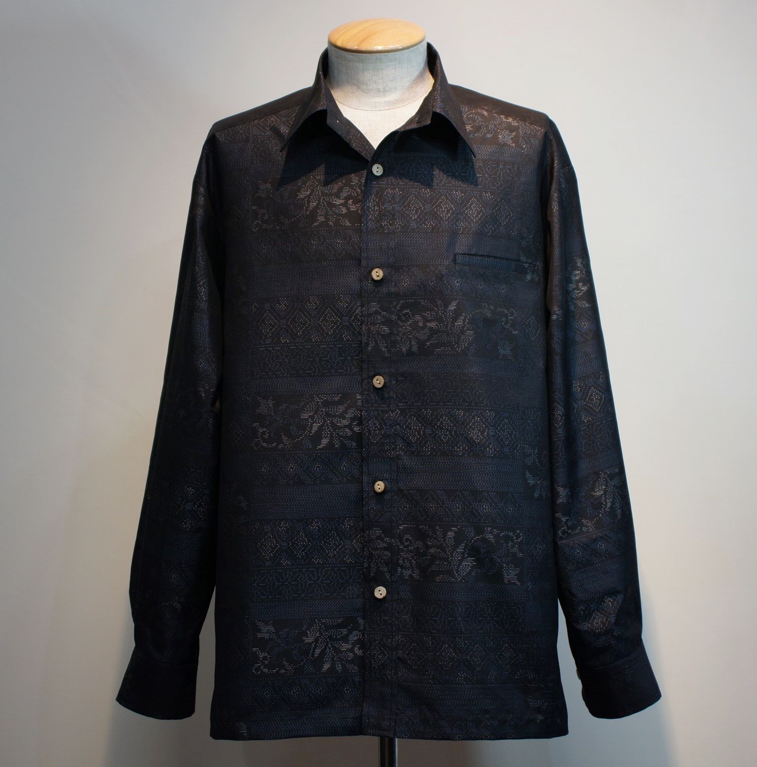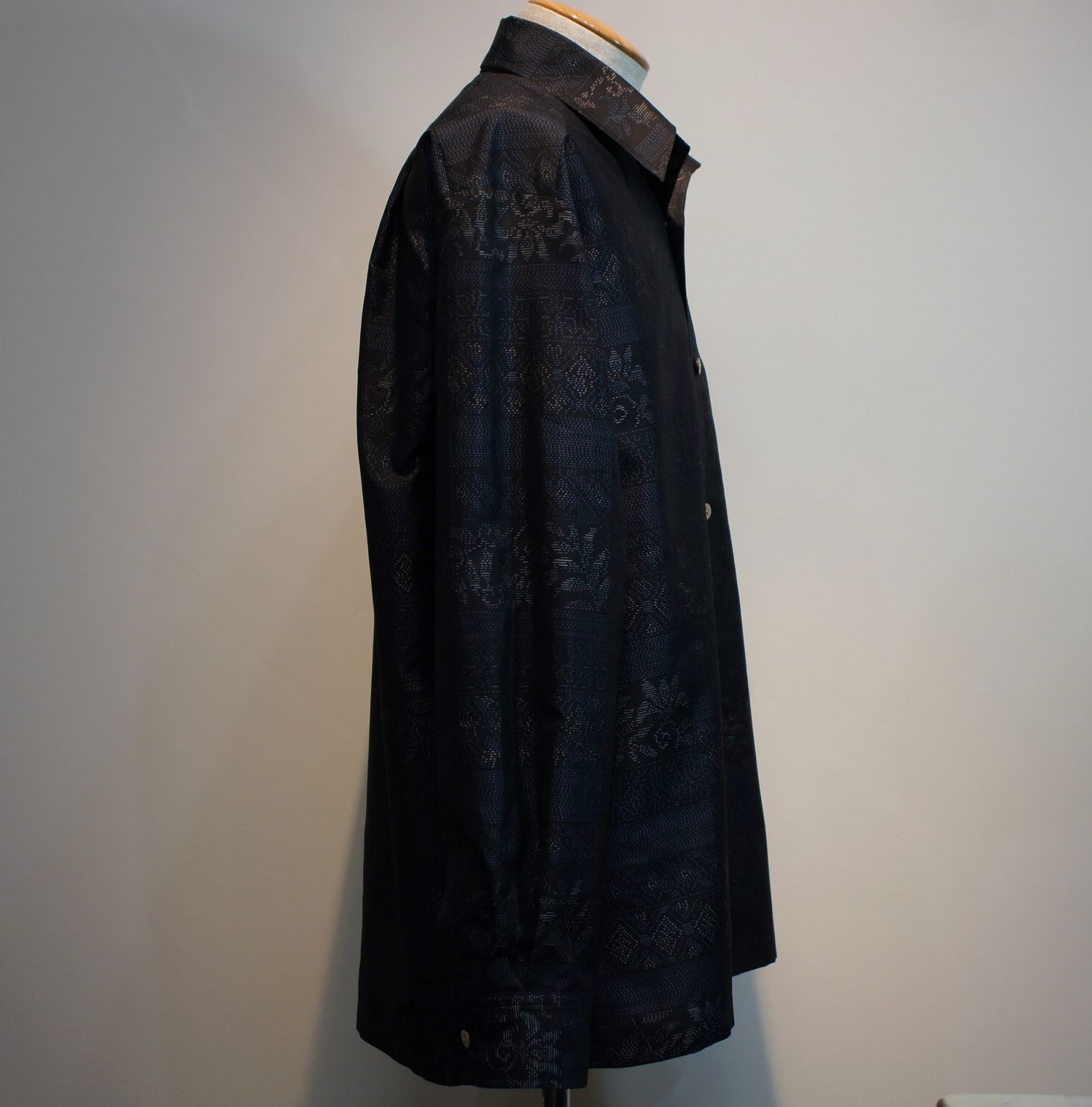 古い大島紬の着物を解いて作製したアロハシャツです。