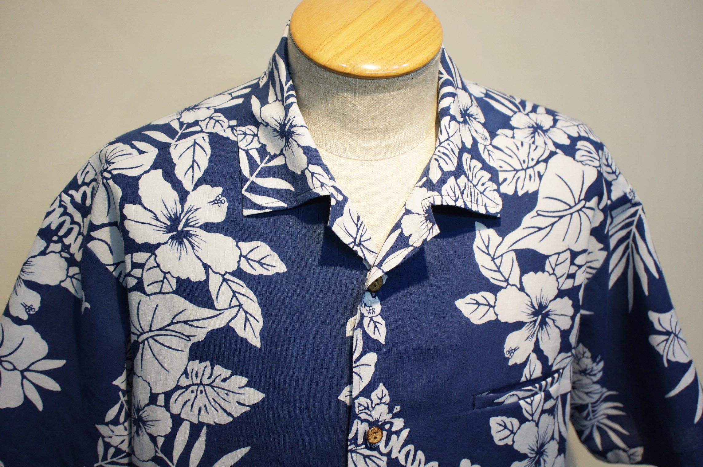 大相撲の浴衣地には珍しいハイビスカスの柄で、アロハシャツにピッタリです。