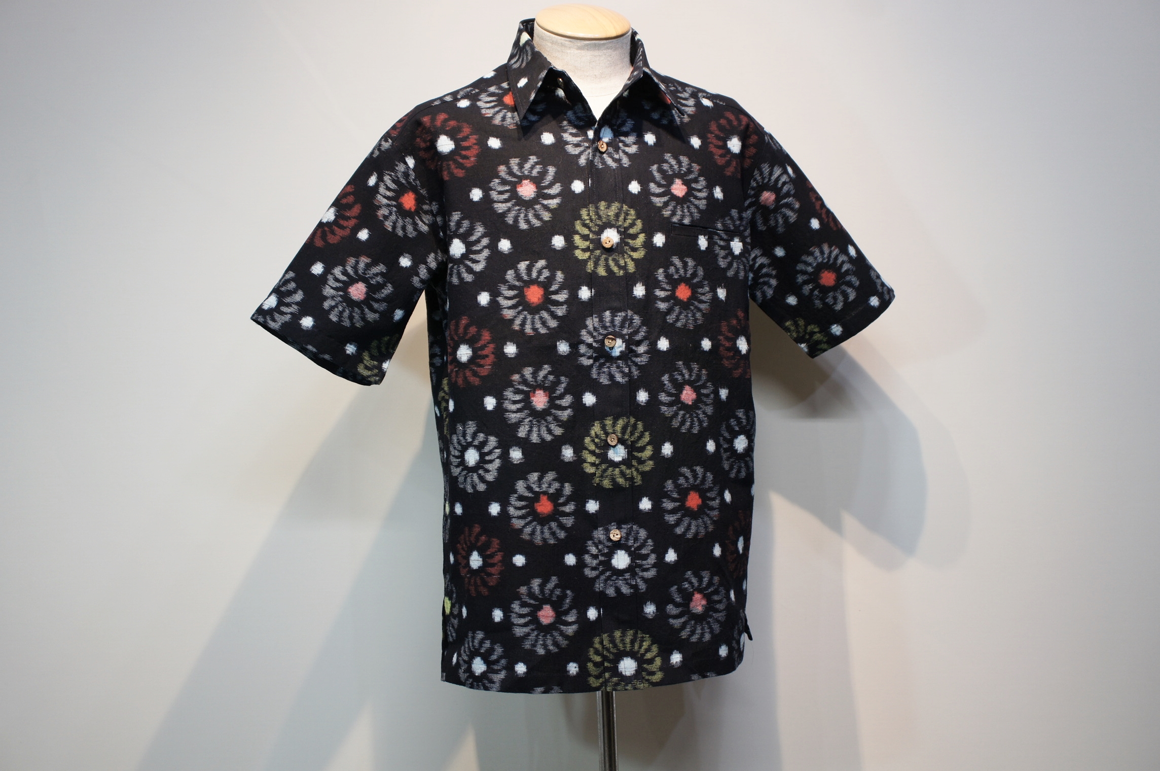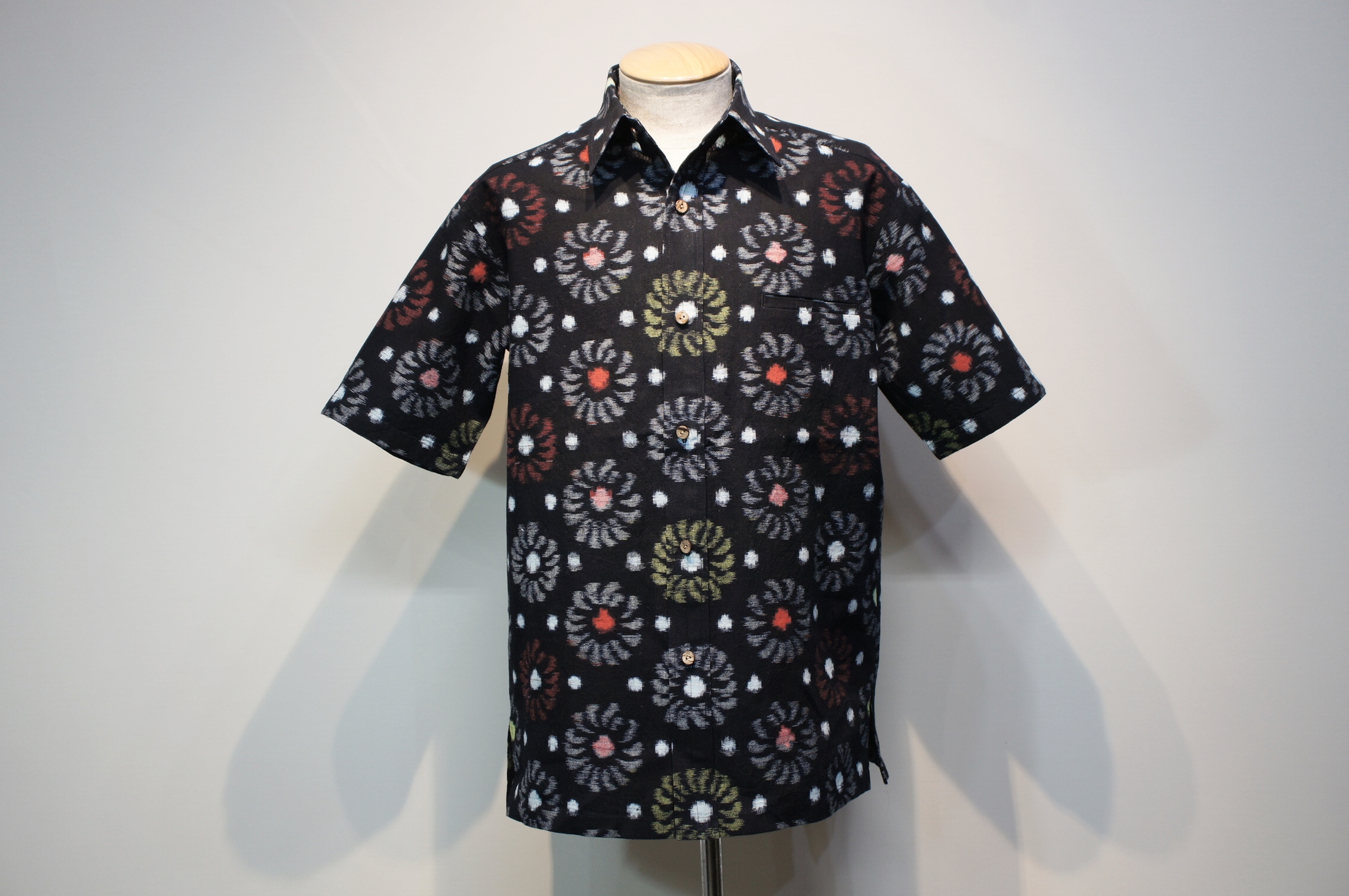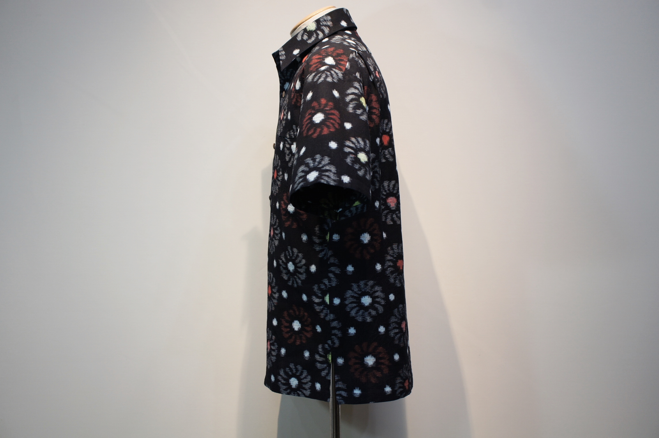 数種類の柄と模様が入り混じり、他の絣生地と比べてデザインや糸の使い方が大きく異なる斬新で素敵な作品に仕上がりました。