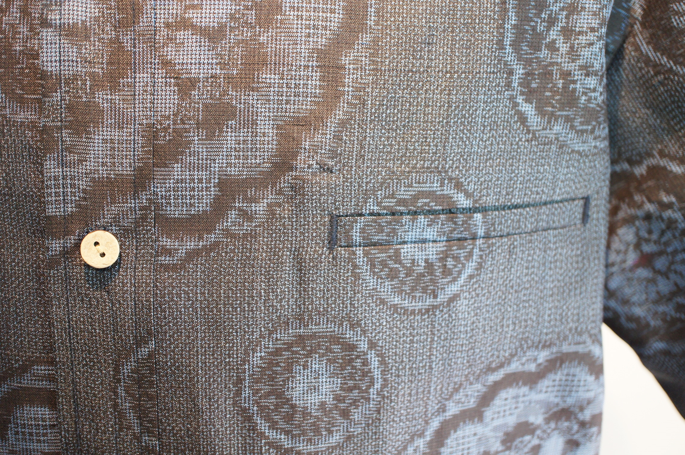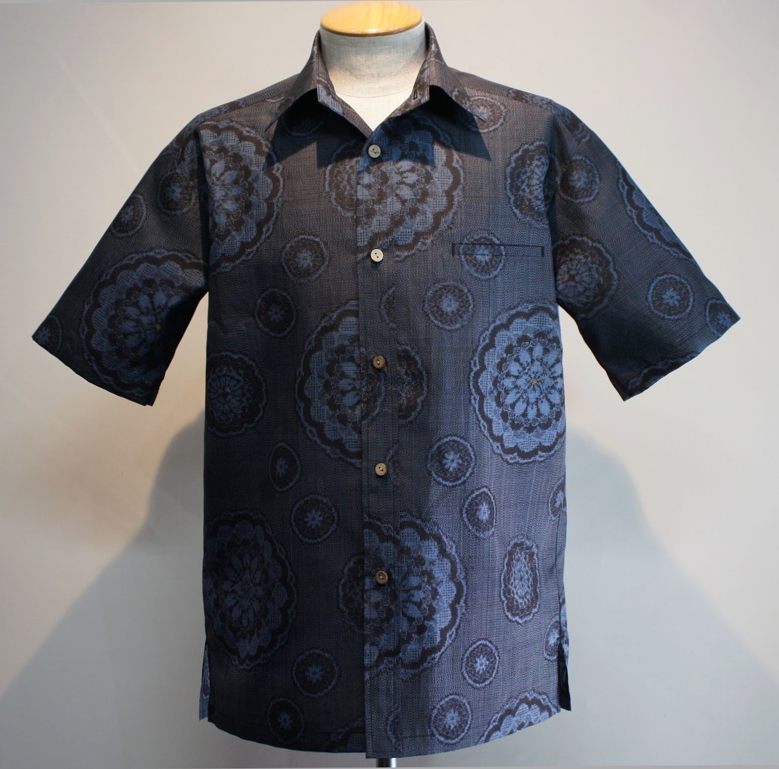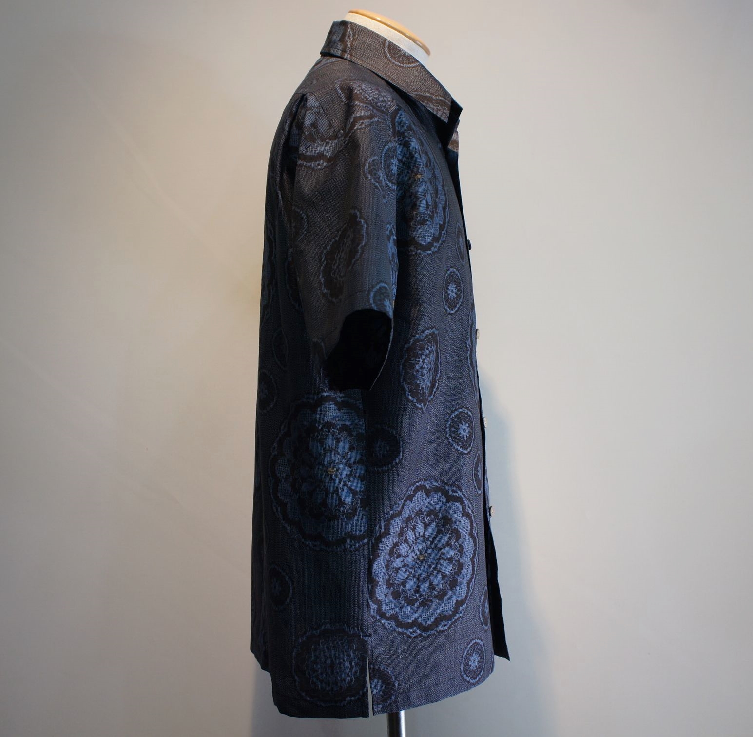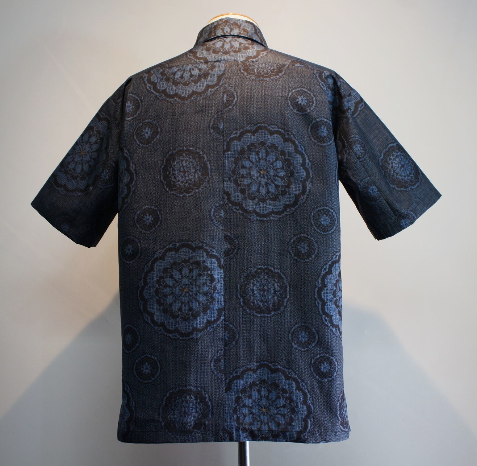 古い大島紬の着物を解いて作製したアロハシャツです。